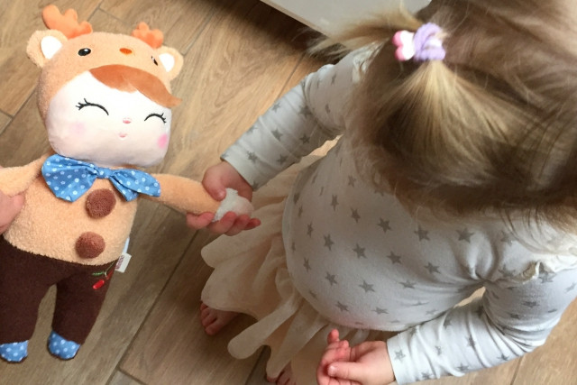 Śmiejąca się laleczka Metoo króliczek to propozycja dla najmłodszych. Jest bardzo leciutka i mięciutka, ponieważ została wykonana w całości z pluszu. Dzieciaki kochają się do niej przytulać i bawić się jej uszkami 🙂