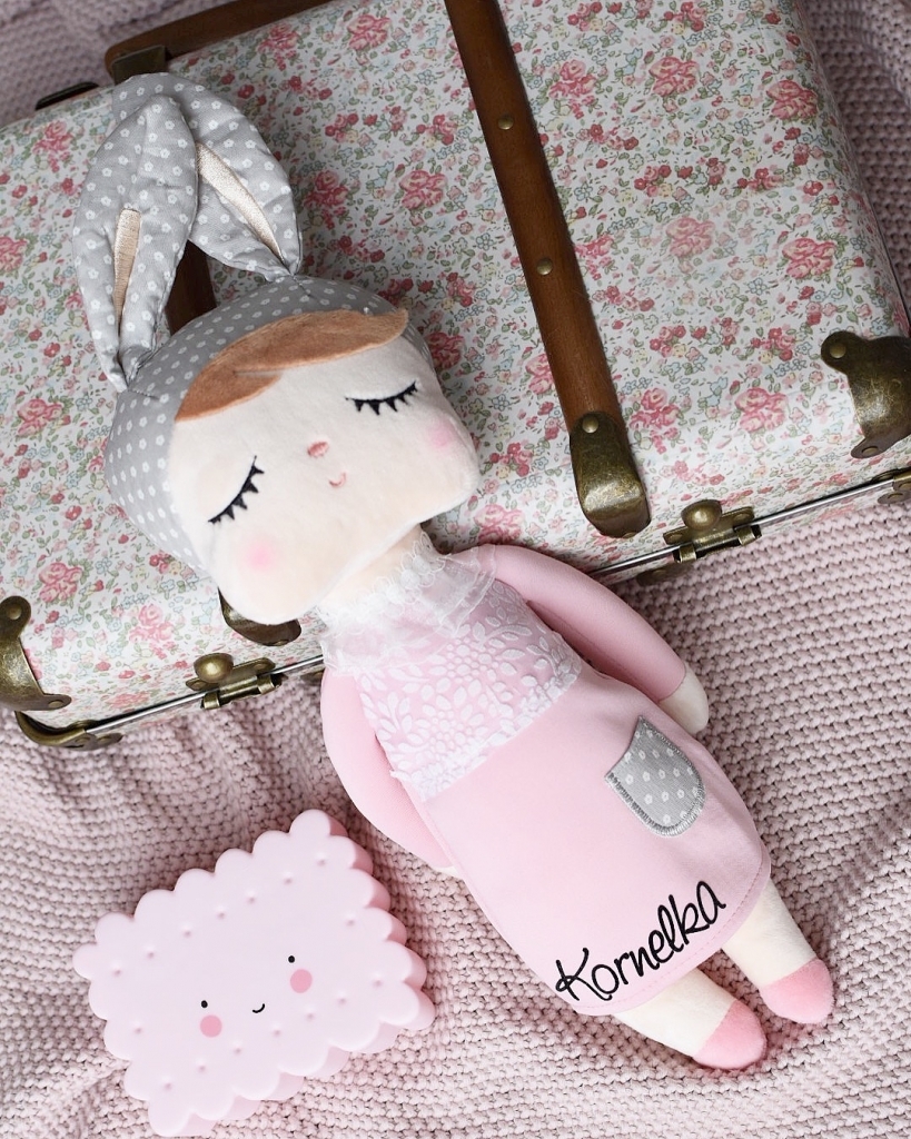 Śpiąca lala Metoo z uszkami w różowej sukience