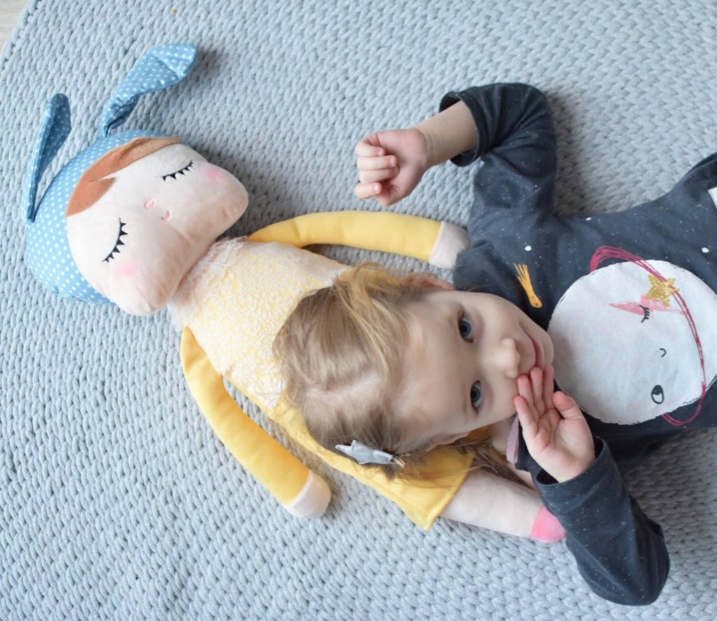 Śpiąca lala z niebieskimi uszkami w żółtej sukience to jeden najpopularniejszych modeli Metoo w naszej ofercie! Zdobyła serca nie tylko dzieci, ale i rodziców na całym świecie. Jest obowiązkowym elementem pokoju dziecięcego w stylu skandynawskim. Wykonana z bezpiecznego i mięciutkiego materiału. Jest idealna do przytulania jak i do dekoracji.