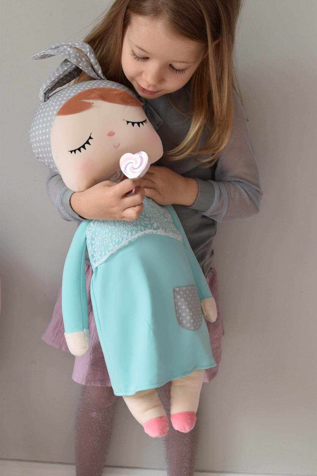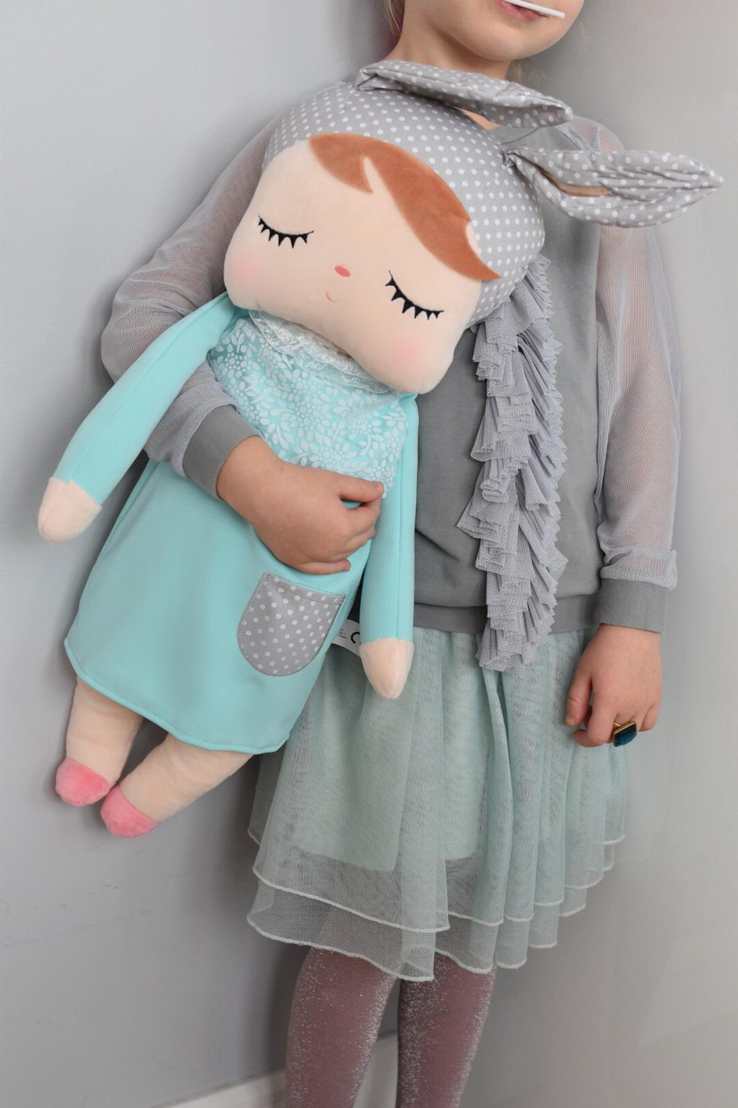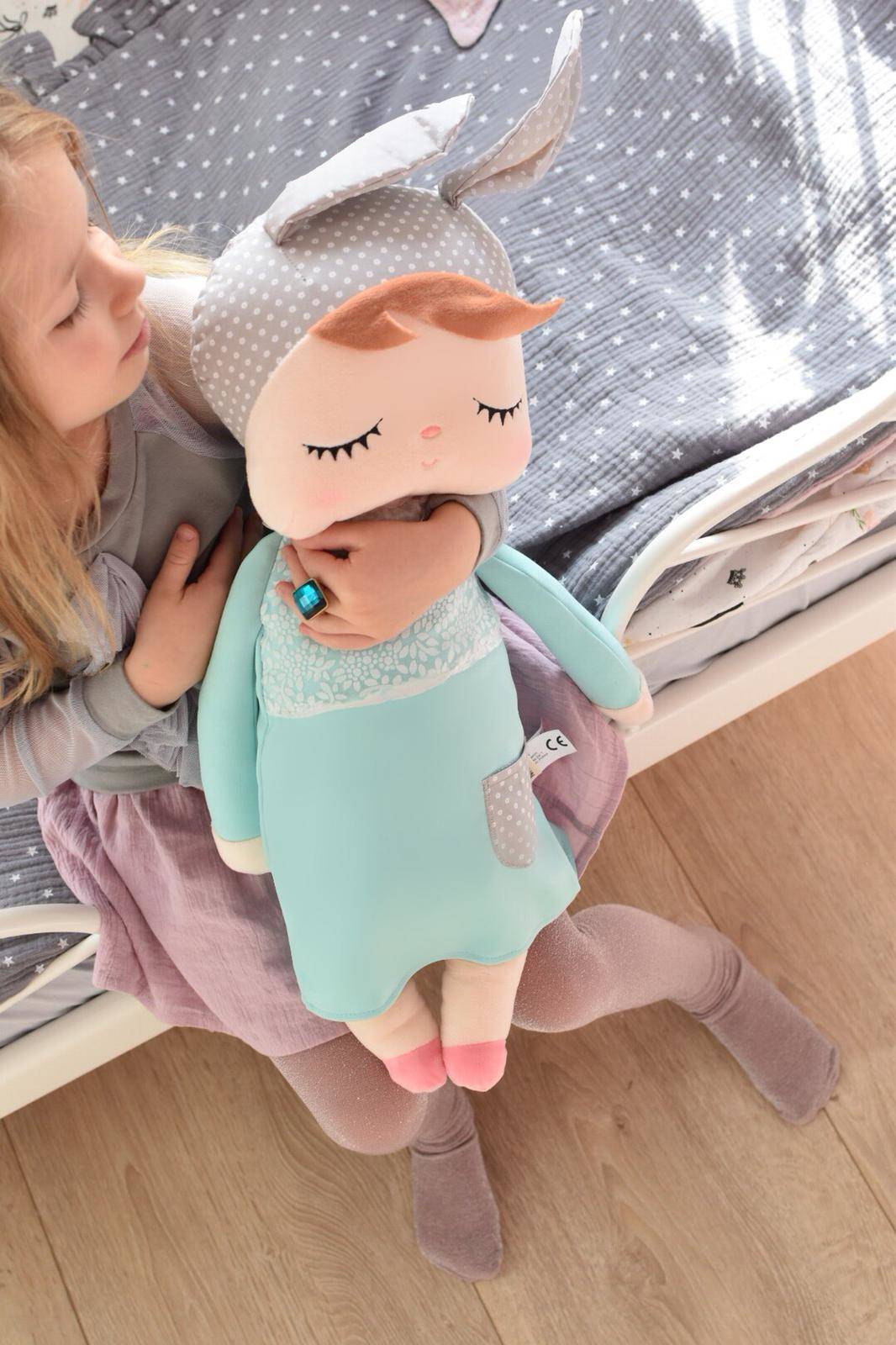 Śpiąca lala z uszkami w miętowej sukience to niewątpliwie  jeden z najpopularniejszych modeli Metoo w naszej ofercie! Zdobyła serca nie tylko dzieci, ale i rodziców na całym świecie. Jest obowiązkowym elementem pokoju dziecięcego w stylu skandynawskim. Wykonana z bezpiecznego i mięciutkiego materiału. Jest idealna do przytulania jak i do dekoracji.