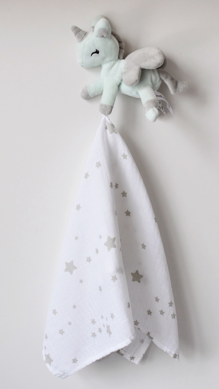 Seria przesłodkich przytulanek- jednorożców z muślinową pieluszką od znanej firmy Melootka to propozycja dla najmłodszych dzieciaczków.