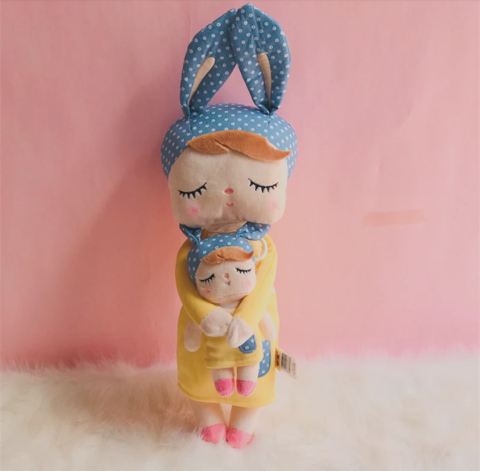 Lalka Metoo z uszkami w pastelowych kolorach. W całości wykonana z mięciutkiego materiału.