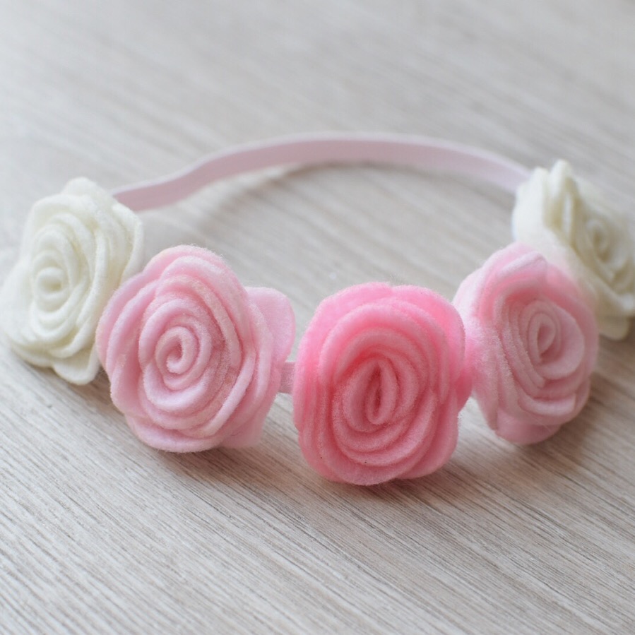 Na opasce znajdują się filcowe kwiatuszki.
