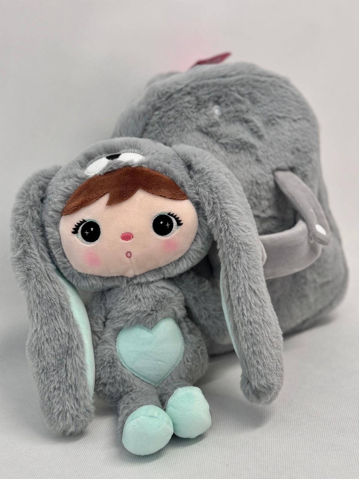 Plecak Królik Szaro-Miętowy z wyjmowanym pluszakiem Metoo