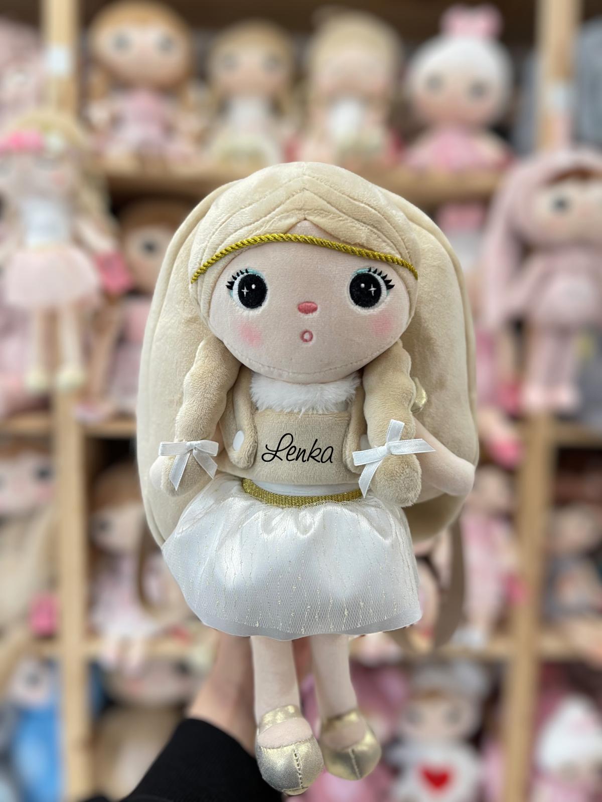 Plecak jest zamykany na suwak. Laleczkę Aniołek 31 cm można wyjąć jako osobny element zestawu.