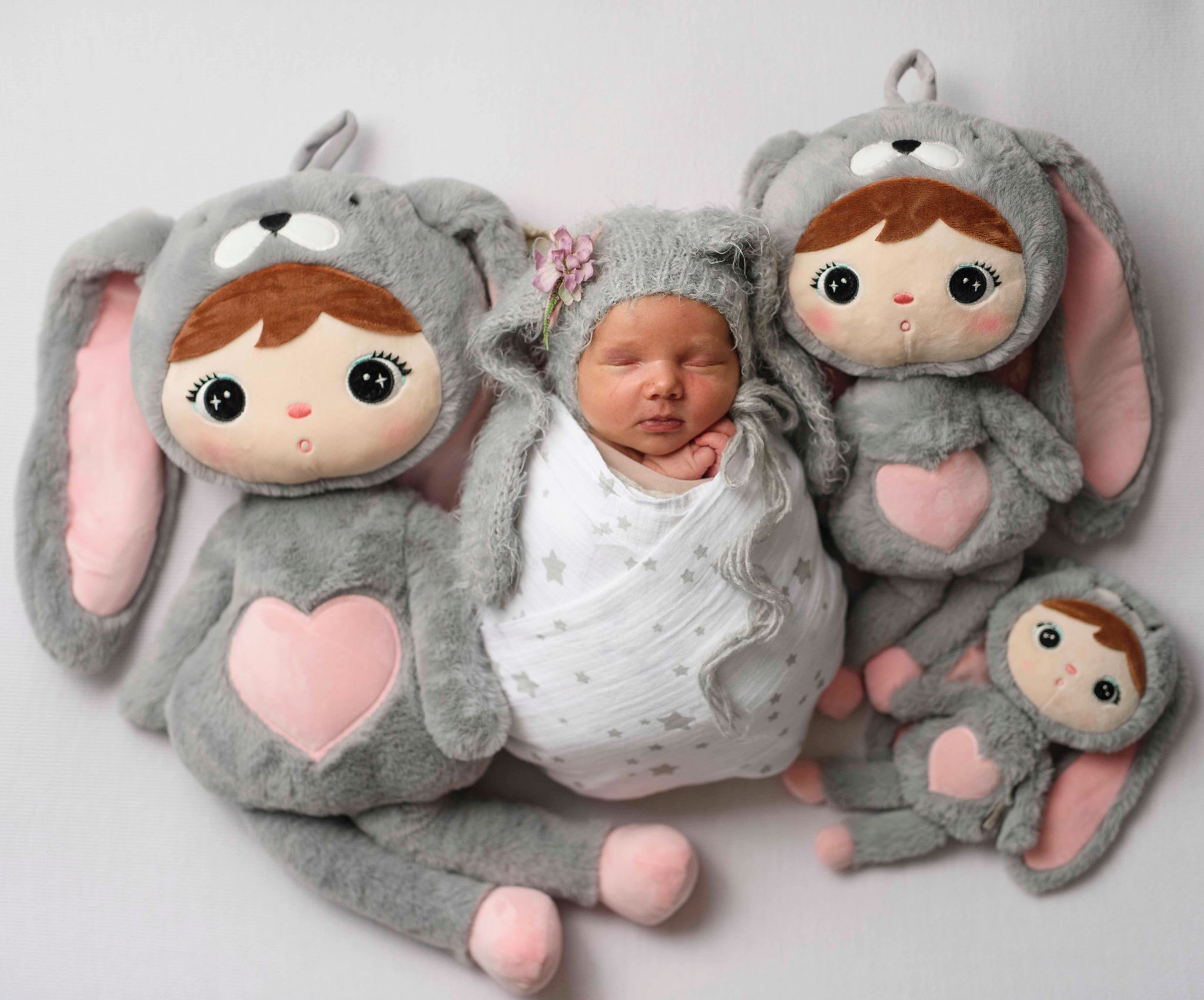 Szaro/różowy Królik 70cm Metoo